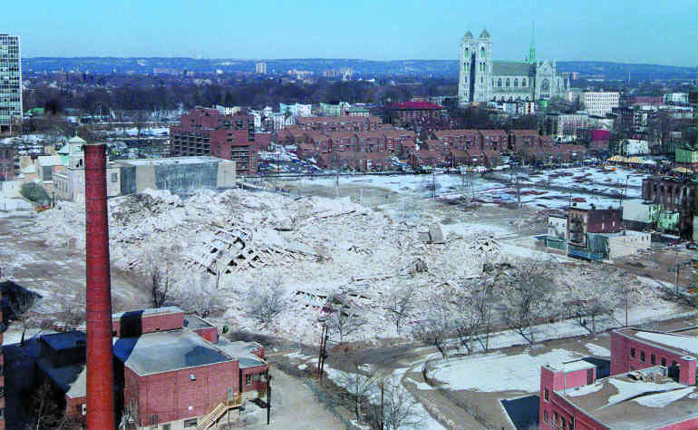 The city water mainline was only 2’ away from the building. 100+ year old church across the street from the implosion site was unaffected by the blast, leaving all the stained glass windows intact. The building was imploded within the contracted time and budget, to the client’s satisfaction, and without any change orders. Zero damage to adjacent structures and utilities, no safety incidents.